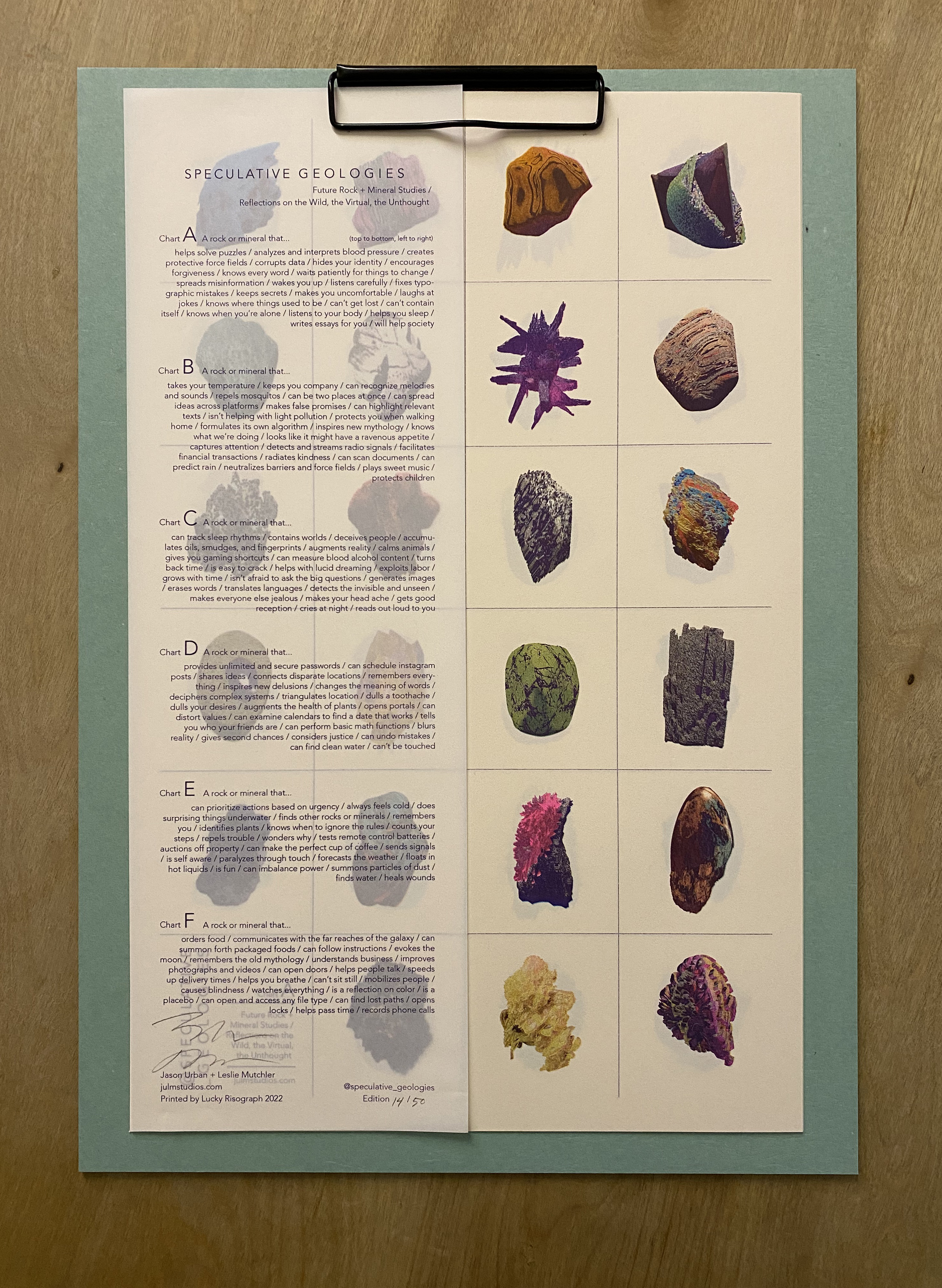 JASON URBAN and LESLIE MUTCHLER (JULMstudios) have been working collaboratively since 2012; they live and work in Brooklyn, New York. As a collaborative duo, they exercise a coequal approach to art and life that focuses on research and problem-solving. With a relationship of physical to metaphysical in mind, their practice is increasingly about the natural world and the way digital technologies influence and distort our relationship to nature.